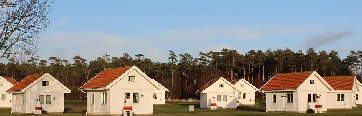 6-8 bäddstugor med toalett, dusch, diskmaskin, kyl, frys, micro, TV på 1:a och 2:a vån. Sovrum med dubbelsäng. Och ett sovloft med 4 bäddar samt en bäddsoffa i vardagsrum.
